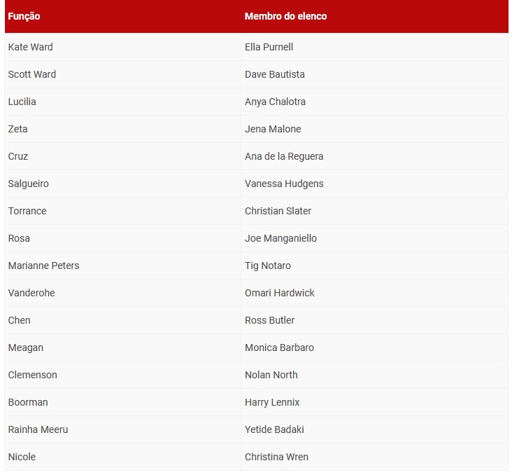 Já foi confirmado que cinco membros do elenco original, incluindo Dave Bautista, voltarão para reprisar seus papéis na série animada. São: Ana De La Reguera (Narcos), Tig Notaro (One Mississippi), Omari Hardwick (Kick-Ass) e Ella Purnell (Arcane). Confira abaixo a lista completa dos membros do elenco de Army of the Dead: Lost Vegas.