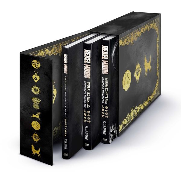 Em resumo, Rebel Moon: Wolf vai aos bastidores do universo REBEL MOON para explorar os mundos e a tecnologia, naves e armamento. Enquanto isso, Rebel Moon: Wurm explora os personagens, criaturas e temas. Cheios de fotografia exclusiva no set, arte conceitual, storyboards de Zack Snyder, figurinos e muito mais, acompanhados de entrevistas com o elenco e a equipe, esses livros dão uma visão aprofundada da produção dos filmes.
