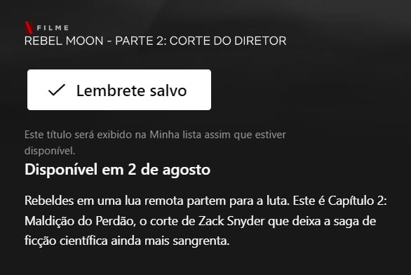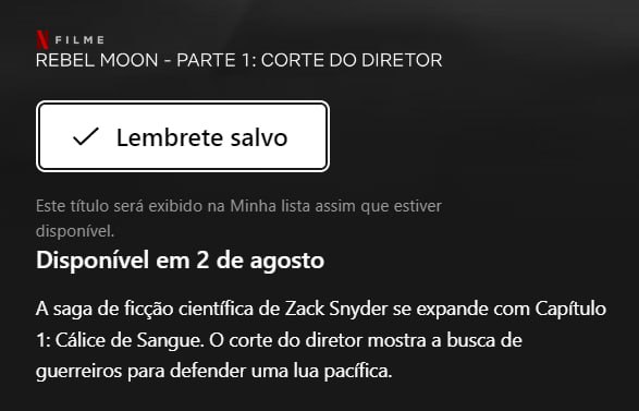 Na plataforma da Netflix Brasil, você já pode programar seu lembrete de lançamento do filme, que estreia dia 02 de agosto. E notamos que os títulos alternativos, oficialmente, serão usados por aqui, ganhando tradução nacional. Na sinopse dos cortes do diretor, você os encontrará.