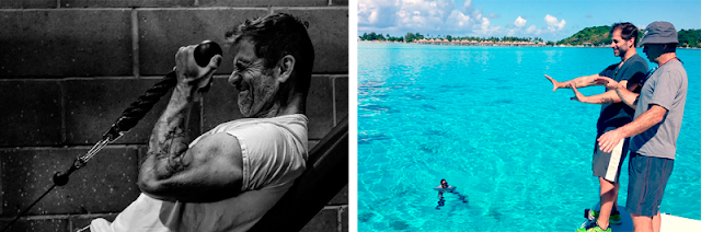 | Zack treinando durante as gravações de BvS | Locação em Bora Bora |