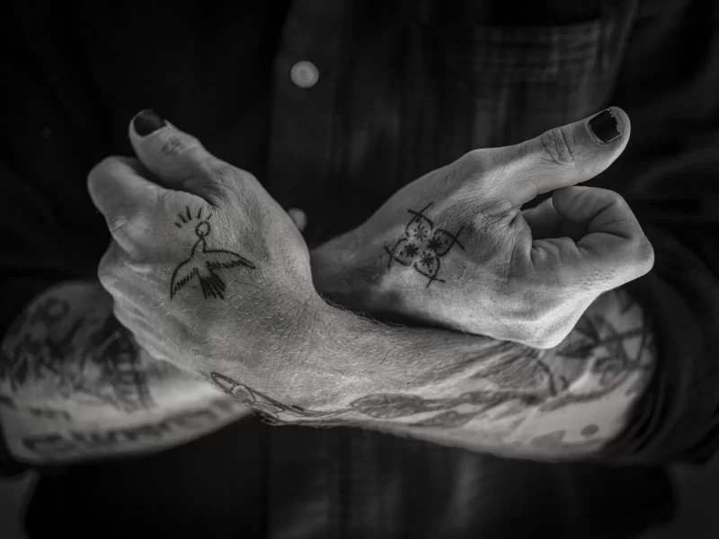 É uma visão para sua carreira pela qual ele está feliz em se aprofundar, e nós o fazemos, mas, tanto quanto Snyder gosta de olhar para o futuro, ele também tem o hábito de voltar ao passado. Enquanto conversamos, ele se levanta repetidamente para me mostrar uma peça de memorabilia após outra. Folheamos as capas de uma rara trilha sonora de vinil de Liga da Justiça ($400 no eBay). Passamos pelo roteiro cuidadosamente encadernado e não produzido de A Nascente. (Falamos mais sobre Ayn Rand do que o esperado.) Em seguida, passamos para os storyboards originais de Watchmen, que são nítidos e artisticamente limpos. Quando chegamos à cena em que Rorschach luta com os caras no corredor, Snyder faz um pequeno som de “pink-pink-pink” enquanto simula atirar com uma arma.