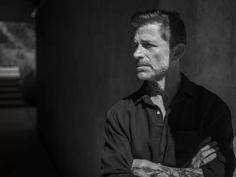 Mais animais empalhados do que o normal habitam o escritório de Zack Snyder. Uma leoa. Um castor. Um pato. Além de uma extensa coleção de machados, espadas e armas — as armas usadas para derrubar as feras selvagens, talvez? O efeito deveria ser perturbador, mas não é, porque o próprio Snyder é caloroso, conversador, receptivo. E o espaço, escondido em uma encosta em Pasadena, Califórnia, acaba sendo menos uma caverna masculina e mais uma caverna de fãs: um santuário de Snyder para sua vida criativa. As espadas e armas são apenas adereços de seus filmes, como as katanas de Babydoll em Sucker Punch. A foto da Mulher-Maravilha acima do sofá, segurando algumas cabeças cortadas? Enorme e em tons de sépia, é estranhamente sedutora.